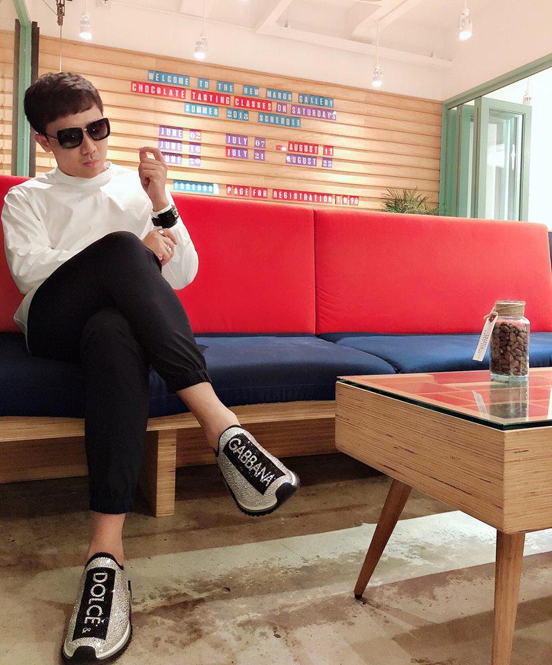 Trấn Thành đi cà phê cùng với bạn bè và nam danh hài khoe khéo set đồ ấn tượng cùng với đôi giày Dolce & Gabbana đính đá của mình.