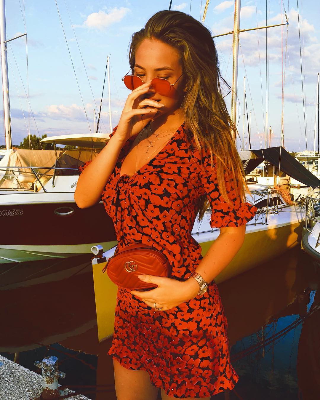 Không hổ danh là cô nàng sành mốt, Izabel đã tậu ngay em túi đeo lưng đình đám của Gucci để nhấn nhá cho chiếc đầm đậm chất hè.