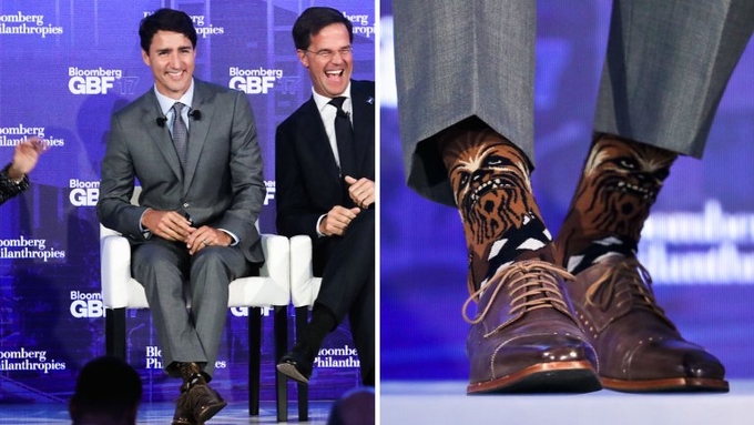 Nhà chính trị gia còn dùng vớ để thể hiện sự hài hước, khả năng giao tiếp “đỉnh”. Khi tham dự Diễn đàn Doanh nghiệp Bloomberg toàn cầu và một cuộc trò chuyện với vợ của tỷ phú Bill Gates - doanh nhân Melinda Gates - ở New York, ông muốn xóa đi sự căng thẳng bằng việc mang tất hình Chewbacca - nhân vật nổi tiếng trong phim Star Wars.