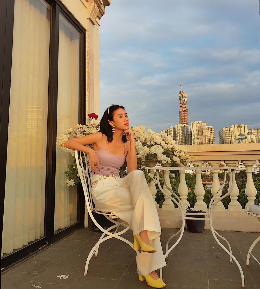 Chỏ diện set đồ basic gồm áo hai dây và quần jeans, Hồ Ngọc Hà vẫn vô cùng năng động, thu hút. Trang phục ôm, khoe hết lợi thế hình thể của giọng ca “Gửi người yêu cũ” khiến người đối diện không thể rời mắt.