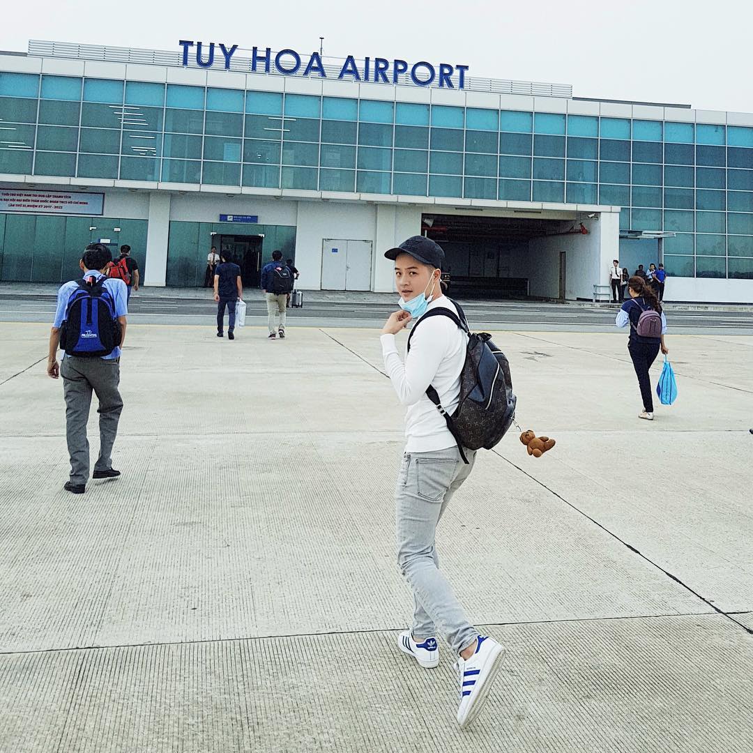 Set đồ đơn giản với áo phông tay dài cùng quần kaki của Thanh Duy đã được nâng tầm lên rất nhiều bởi cách phối phụ kiện giày thể thao Adidas và ba lô Louis Vuitton đắt giá.