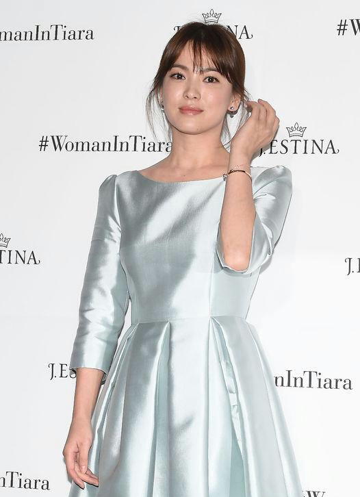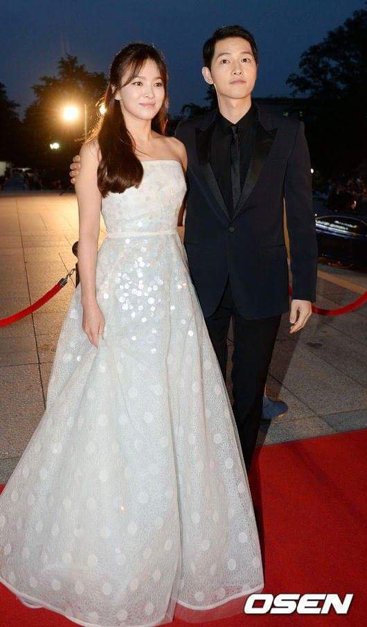 Chán đá, pha lê,… ” mỹ nhân không tuổi” chuyển sang chọn đính kim sa lấp lánh. Cùng mái tóc nâu gợn sóng, Song Hye Kyo trông như nàng tiên cá đang sánh bước cùng “bạch mã hoàng tử” của đời mình.