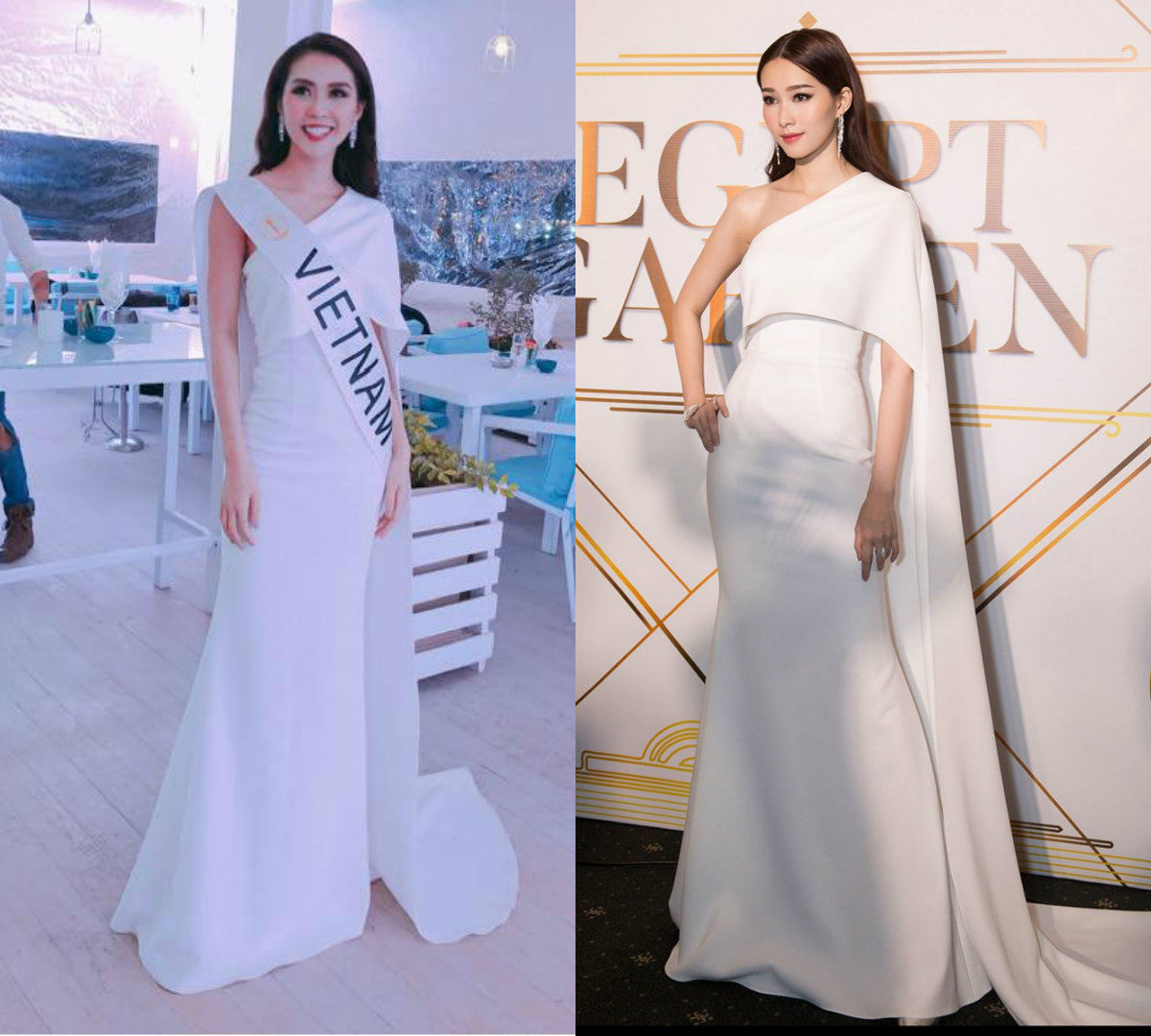 Đại diện Việt Nam đang tham gia các hoạt động chính thức của cuộc thi Hoa hậu Liên lục địa diễn ra tại Ai Cập. Trong những ngày qua, Tường Linh liên tiếp có màn đụng váy liên hoàn với các người đẹp khác trong showbiz. Mới đây, người đẹp lại chẳng ngại “đụng hàng” với “thần tiên tỷ tỷ” Đặng Thu Thảo trong bộ cánh “hao vải”.