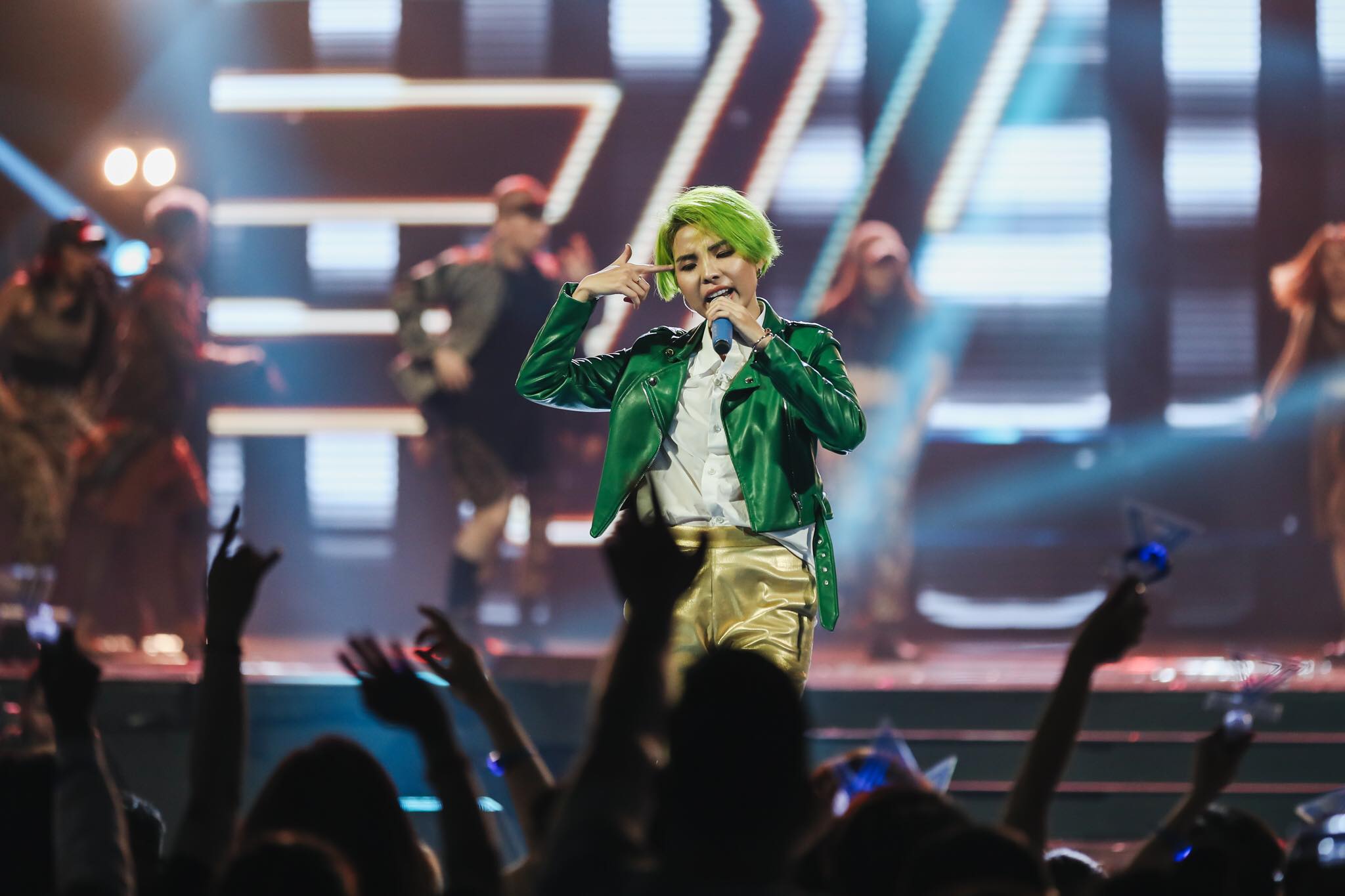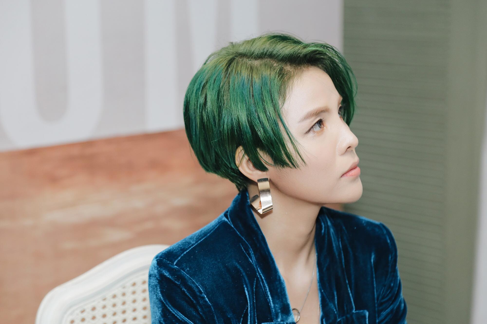 Riêng màu xanh, nữ ca sĩ đã có đến mấy gam màu, khi thì xanh lá cây, khi lại xanh nõn chuối neon.