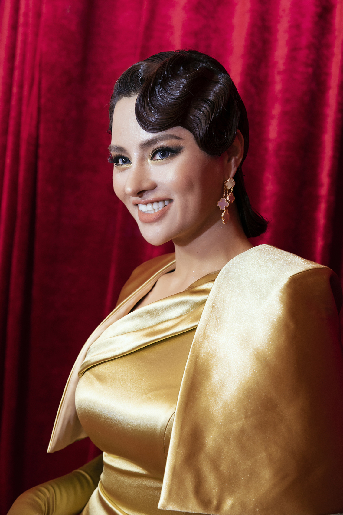 Vũ Thu Phương chọn cho mình phong cách cổ điển với kiểu tóc uốn xoăn sóng cực kỳ nổi bật.