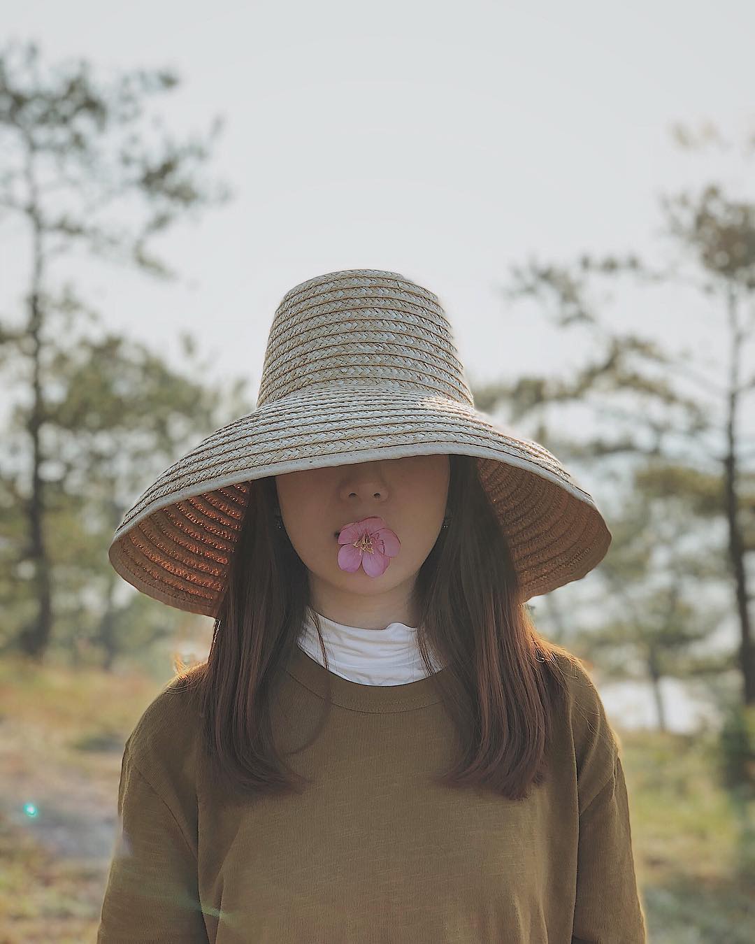 …đến đầm hoa bánh bèo đều có thể phối cùng em nón cói chất chơi này.