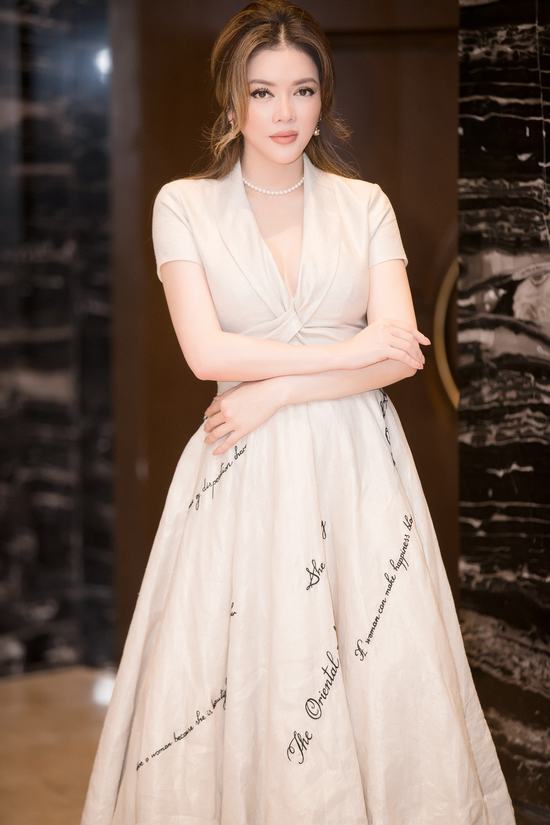 Một thiết kế nhẹ nhàng, thanh lịch với chất liệu vải mềm mại giúp người đẹp gốc Vũng Tàu tôn lên vẻ dịu dàng và làn da trắng sứ.