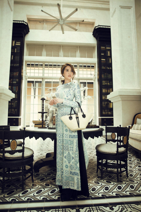 Hay Hà Thu - đại diện Việt Nam tại Miss Earth năm nay cũng từng mặc qua những thiết kế áo dài in họa tiết gạch bông của NTK Bảo Bảo.
