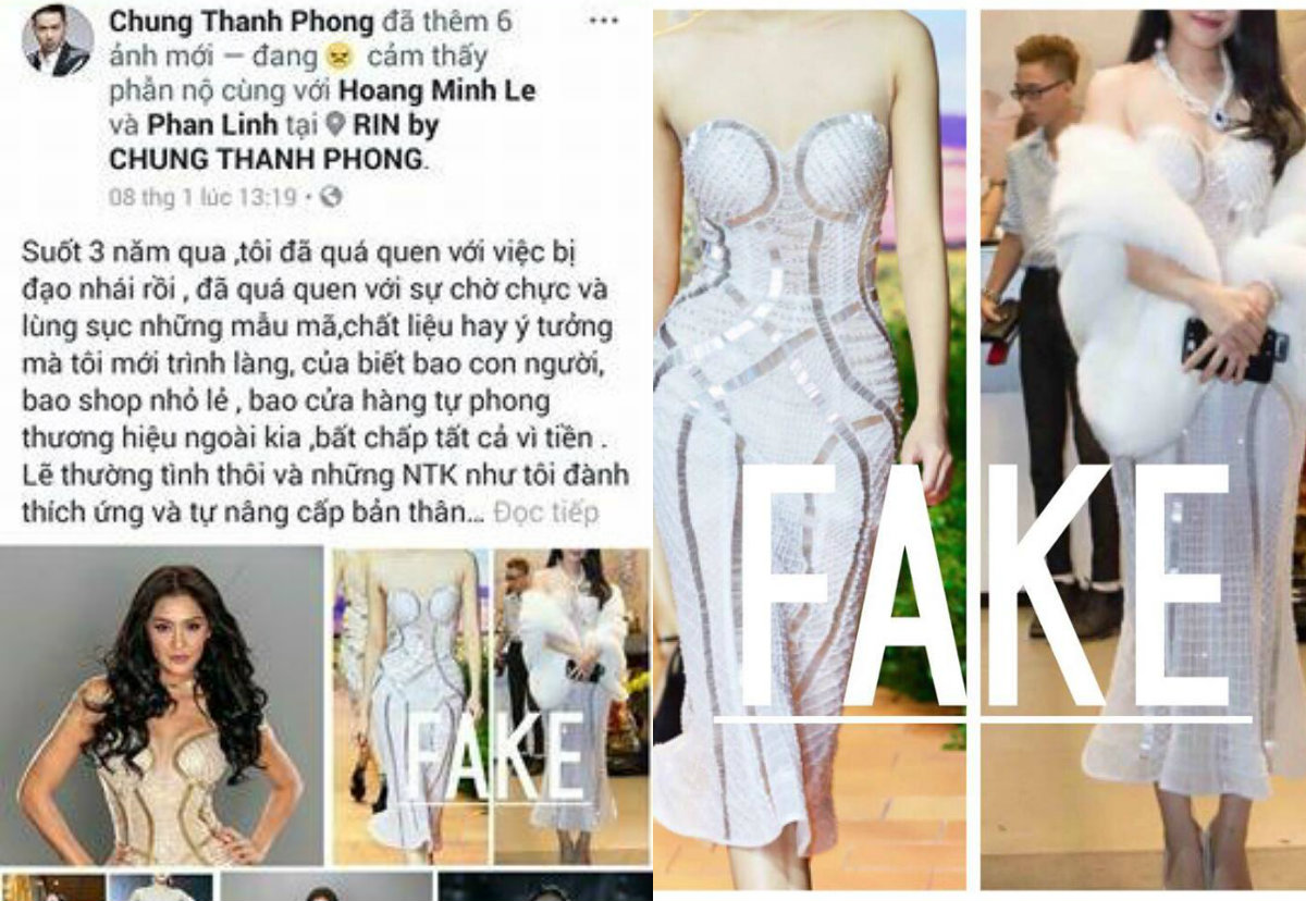 Thế nhưng cách đây vài ngày Chung Thanh Phong đã bức xúc đăng đàn về việc 2 thiết kế nằm trong BST “She's a Goddess” bị NTK khác “đạo nhái”.