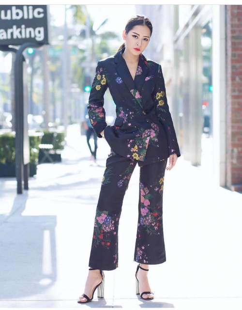 Chi Pu chốt hạ danh sách sao mặc đẹp tuần qua với bộ trang phục đến từ thương hiệu H&M. Bộ suits tông màu đậm họa tiết in hoa kết hợp cùng kiểu tóc chải sát, cột đuôi ngựa thấp, cùng layout makeup tinh tế nhấn vào phần môi giúp cô nàng trông vừa quyền lực, sang chảnh nhưng cũng rất trẻ trung.