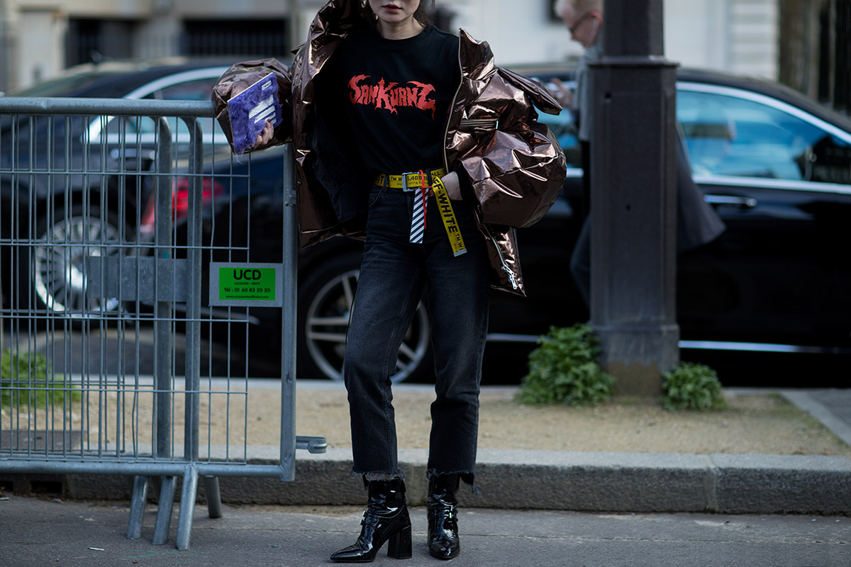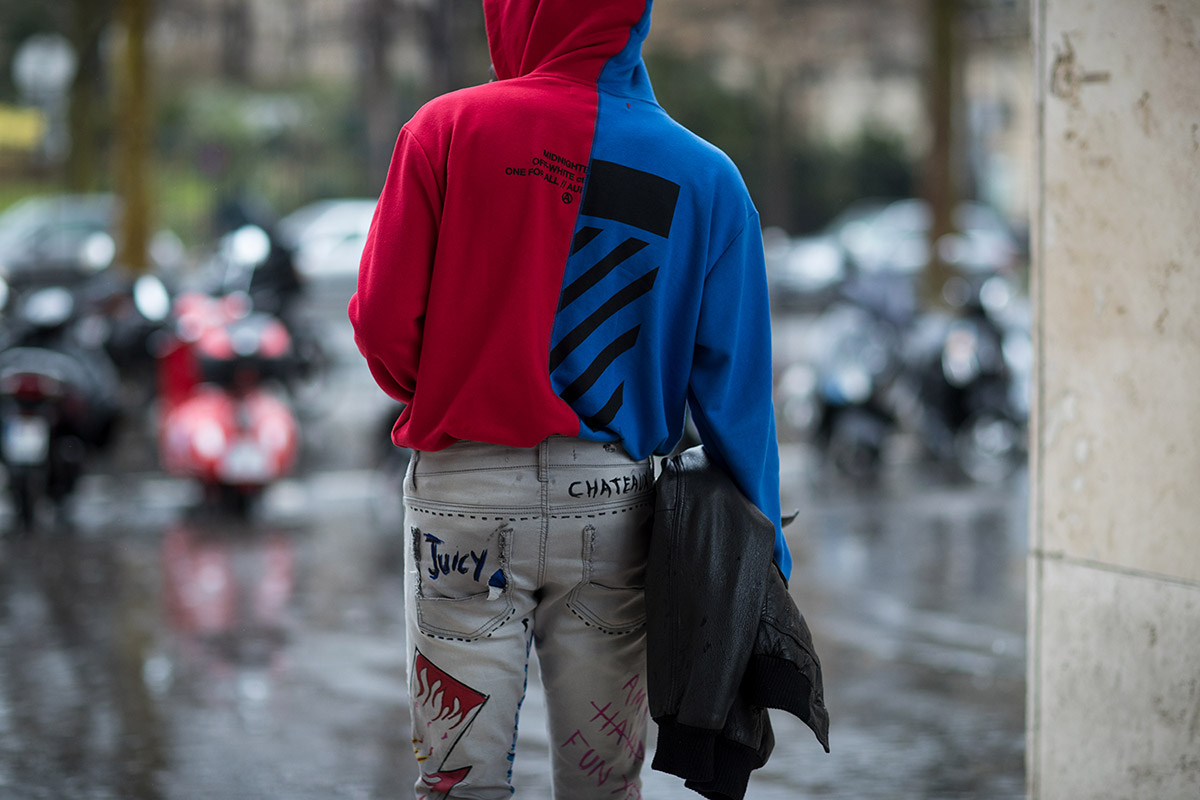 OFF-WHITE vẫn là thương hiệu streetwear xuất hiện đầy trên các đường phố. Cách phối 2 màu vải đối nghịch cho cùng một item đang trở lại đầy mạnh mẽ. Tất nhiên tại Paris, các tín đồ thời trang đã nhanh chóng cập nhật trào lưu này.