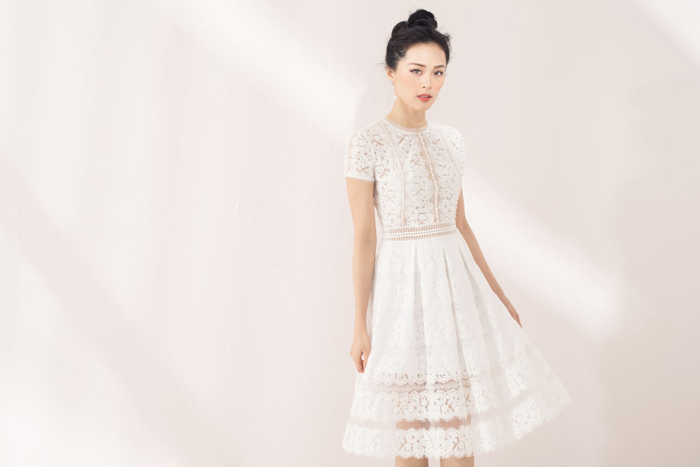 Chi tiết ren tinh xảo với họa tiết nổi cùng phom dáng thịnh hành vừa mang lại vẻ đẹp nữ tính lại hợp xu hướng làng mốt thế giới.