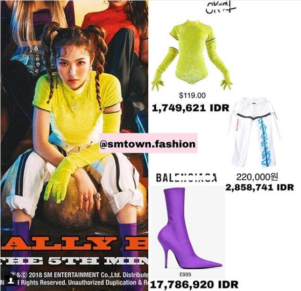 Nguyên cây bad girl của Wendy gồm áo 2, 7 triệu, quần 4,6 triệu và giày 24 triệu.
