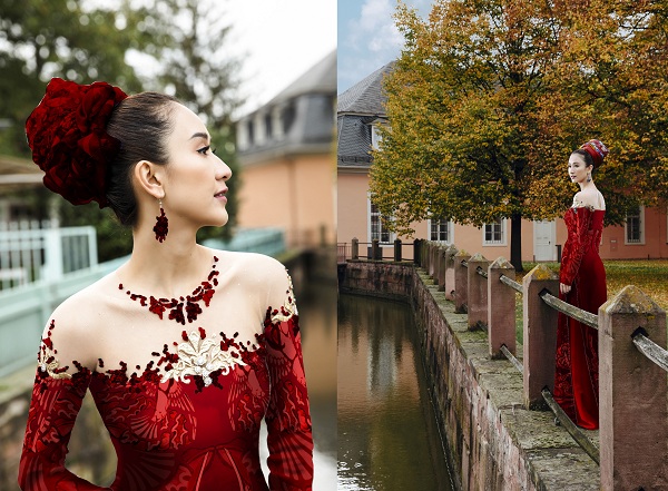 Xu hướng áo dài năm nay sẽ thịnh hành những chiếc áo có tà dài kết hợp với phụ kiện mang màu sắc của Việt Nam