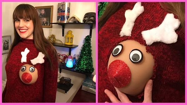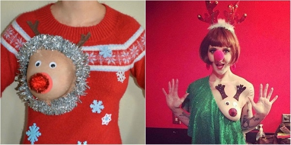 Các cô gái sẽ khoét một bên ngực của chiếc áo len và trang trí phần “ngực trần” của mình thành hình dáng khuôn mặt của con tuần lộc.