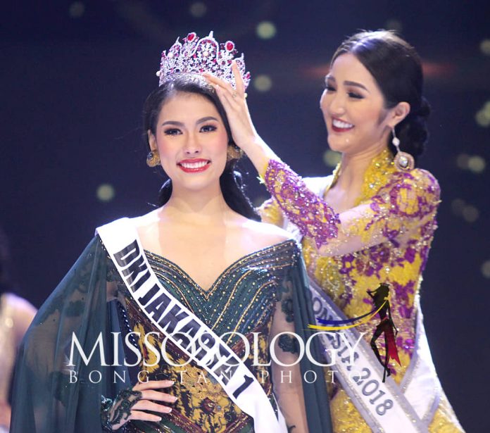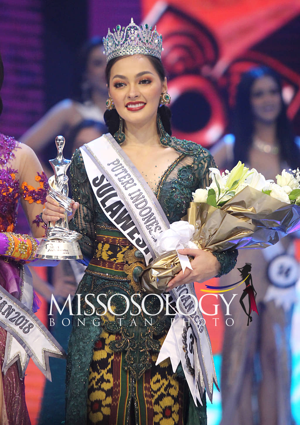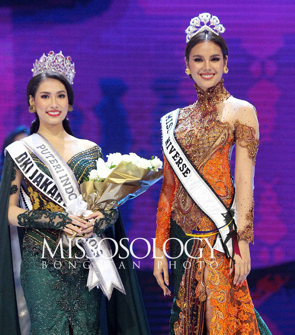 Cô được đương kim Miss Universe 2018 - Catriona Gray trao dải băng Puteri Indonesia 2019.