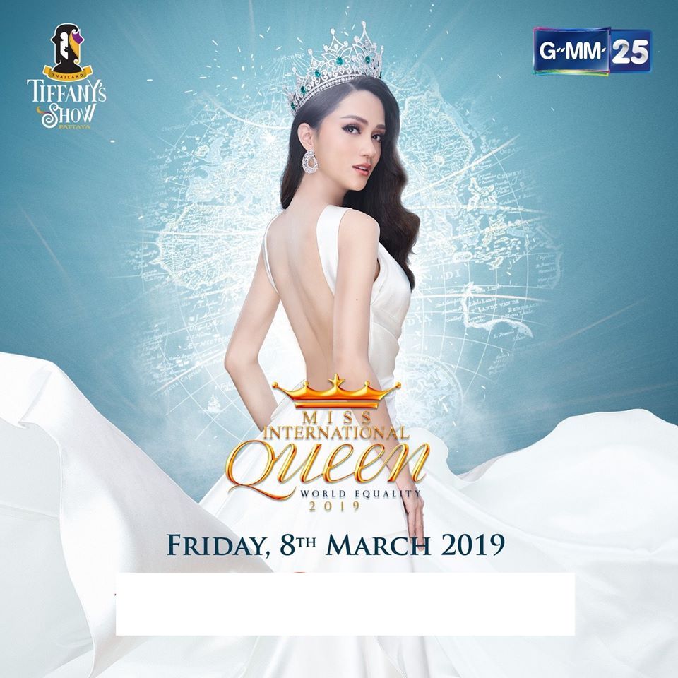 Poster của mùa giải Miss International Queen 2020 lấy màu hồng làm chủ đạo.