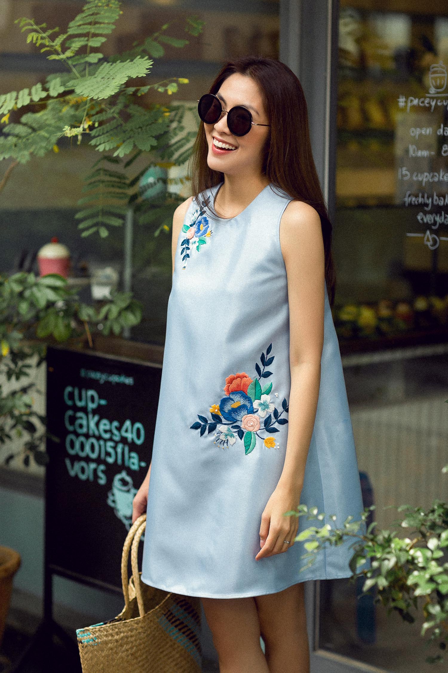 Chiếc đầm suông có chi tiết nhánh cây được thêu tay tỉ mỉ, tuy đơn giản nhưng lại rất đẹp.