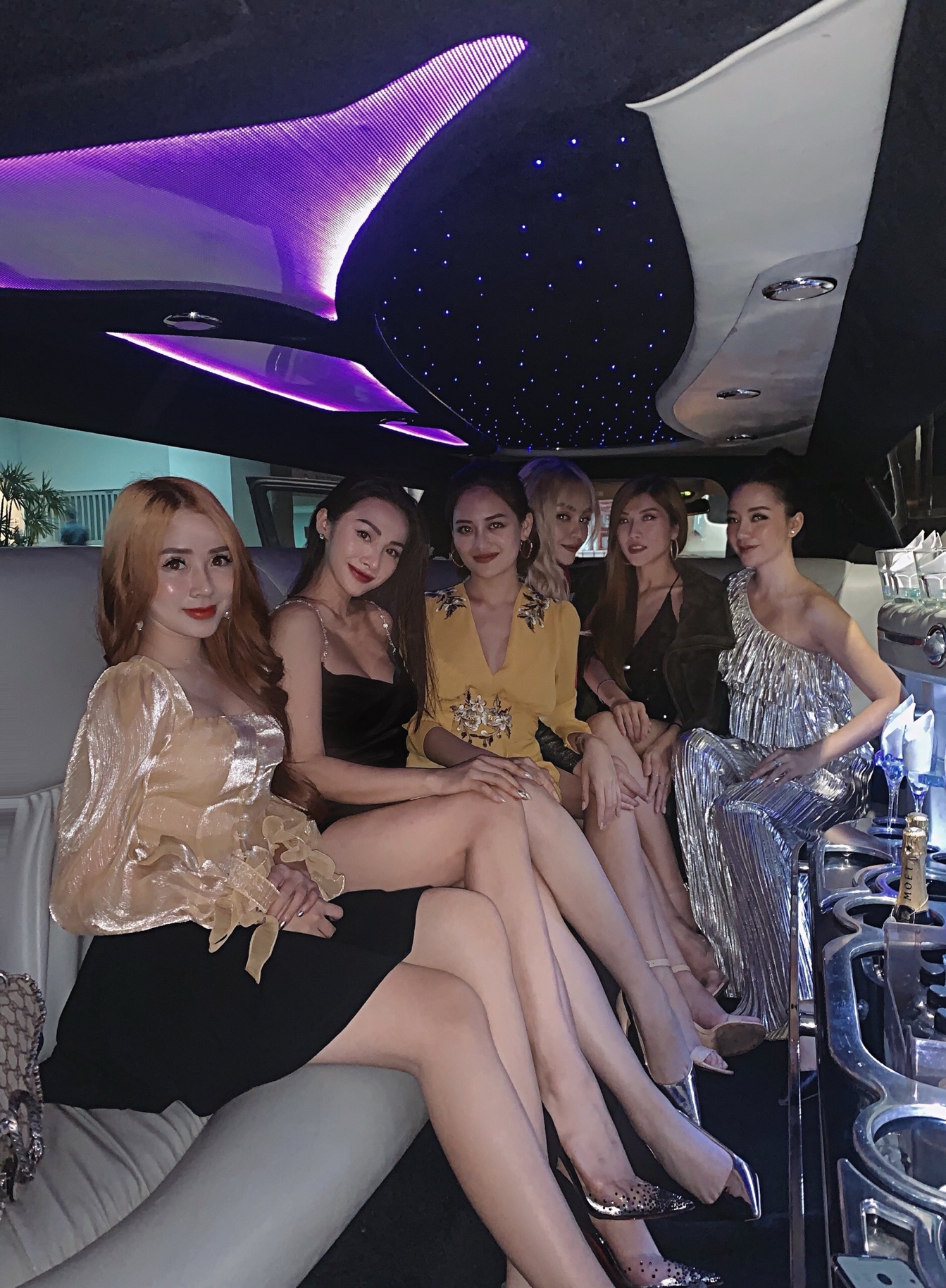 Yaya Trương Nhi cùng hội bạn thân khoe chân dài miên man trên siêu xe limousine.