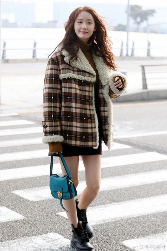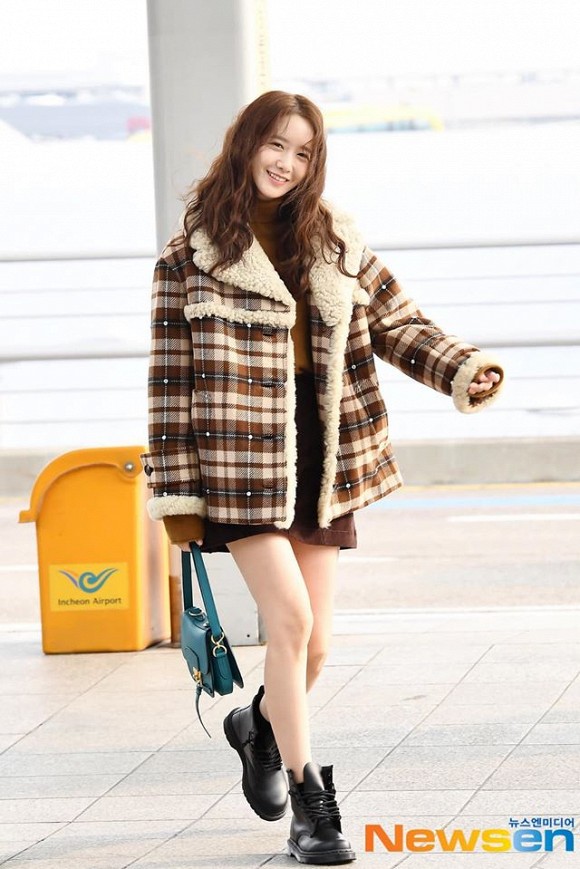 Trước đó, bất chấp thời tiết giá lạnh, mỹ nhân xứ Hàn diện set đồ tông nâu vàng, bên ngoài là chiếc áo khoác kẻ nổi bật mix cùng quần short ở sân bay vừa qua đã giúp cô ghi điểm vì vẻ ngoài quá đáng yêu.