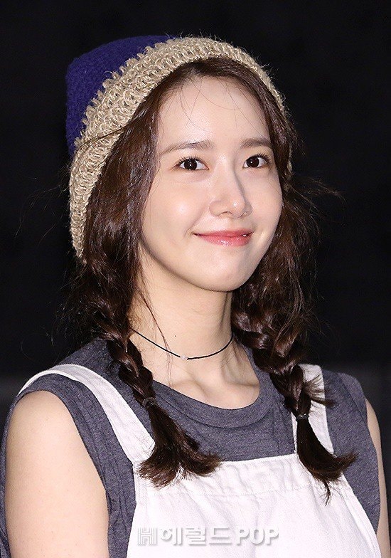 Yoona SNSD còn chọn kiểu tóc hai bím và đội mũ len trông cô không khác gì nữ sinh mới 20 tuổi