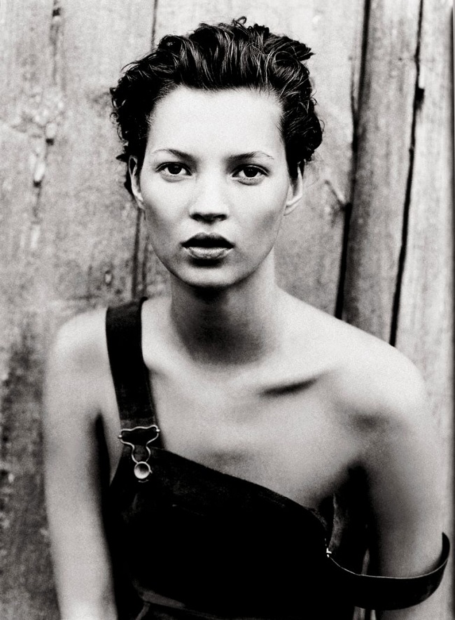 Bức ảnh chụp trắng đen cho biểu tương thời trang nước Anh Kate Moss khi cô vừa mới chập chững vào làng mẫu cho tạp chí Harper's BAZAAR