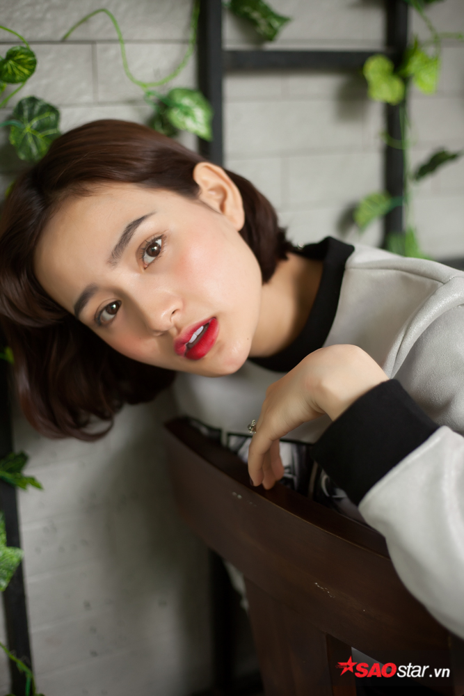 Thực ra, ngoài đời tính cách mình khá hòa đồng và vui vẻ. Bạn bè còn đặt nickname cho mình là “vết xước tâm hồn” vì tính mình tưng tửng quá. Ngoài ra, mình còn hay bị nói không hiểu vấn đề. Ví dụ mọi người đang kể chuyện cười thì phải tầm 2 phút sau mình mới cười được vì tâm trí bị “delay” hơi lâu. Còn về sở thích, mình cũng như các bạn gái khác, thích trai đẹp, mê thời trang. Mình còn muốn đăng kí thi The Face vào năm sau nữa. (Cười)