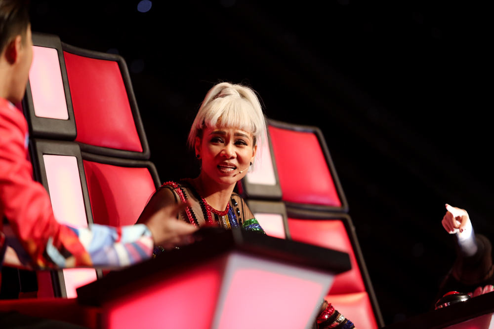 Quyết định về đội HLV Tóc Tiên vì em cảm thấy cá tính của em rất với chị. Em hi vọng sẽ học hỏi được nhiều từ chị, một người giàu bản lĩnh, quyết liệt nhưng không bò gó. Em rất thích cái chất của chị và em rất muốn có được điều đó ở bản thân mình”.