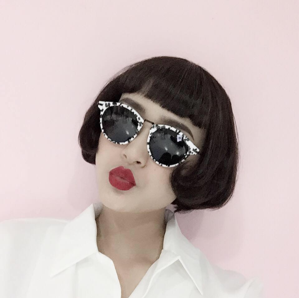 Tóc ngắn cúp vào trong, son môi đỏ cùng mắt kiếng cá tính khiến Hồ Hiền vô cùng thời thượng nhưng vẫn rất trẻ trung.