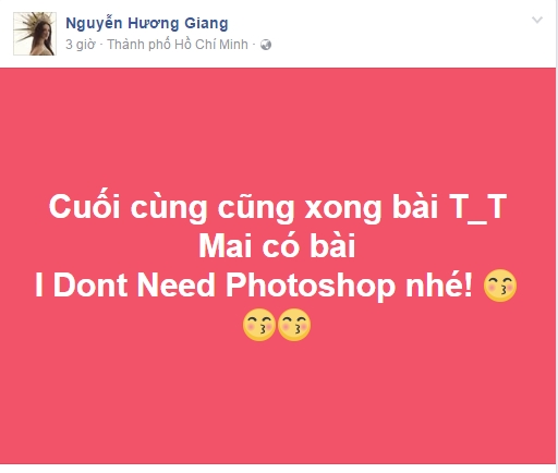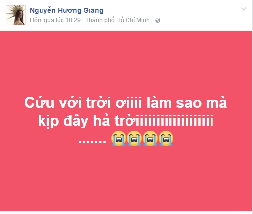 Post trạng thái này được Hương Giang đăng tải lên trang cá nhân vào lúc tối muộn, thông báo tình hình “bài vở luyện tập” có vẻ suôn sẻ hơn. Trước đó vài tiếng, cô nàng còn hốt hoảng tìm kiếm thêm một nhân sự mới hỗ trợ cho tiết mục của mình.