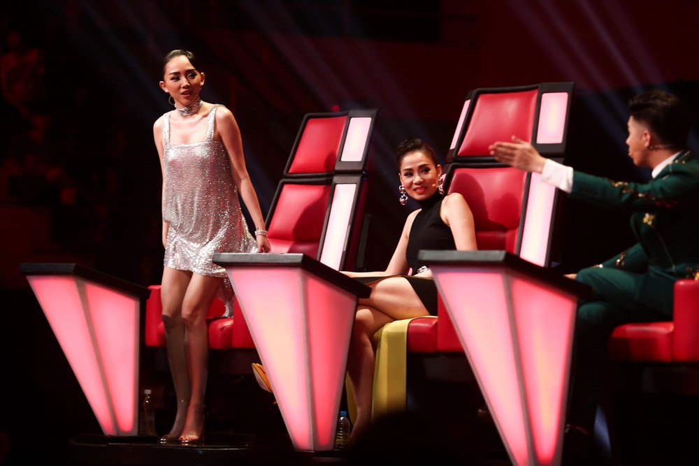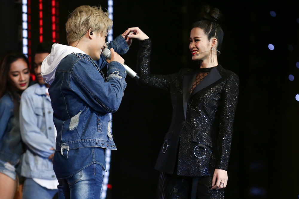 HLV Đông Nhi quay sang Thu Minh chia sẻ: “Giống như em bị dằn mặt đó chị, vì lúc trước em có khiếu nại tại sao không liếc qua bên em, hôm nay lại đi xuống đúng một chỗ bên em lại còn đá lông nheo nữa”. HLV Thu Minh vui vẻ nói rằng: 'Đó không phải là dằn mặt mà thỏa mãn sự mong muốn của em”.