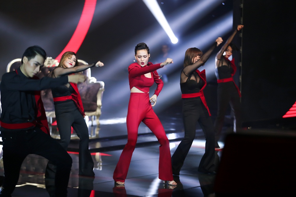 HLV Tóc Tiên chia sẻ: “Cám ơn Tú đã làm thức tỉnh cả trường quay, Tú liều lĩnh khi chọn ca khúc 'Yêu 5' vì nó rất ít đất để em phô diễn về giọng hát. Tuy nhiên, HLV của em rất thông minh trong việc căn chỉnh và quan trọng là lần đầu tiên em nhảy với dancer, một tiết mục thành công”.
