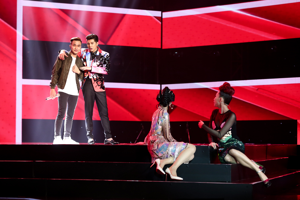 Trước màn “đấu đá” nảy lửa của 3 gương mặt trẻ trên ghế nóng, HLV Thu Minh dù mong muốn đứng ra dẹp loạn cũng không thể vượt qua sự máu lửa của đàn em. Kết quả, mặc dù yêu thích và mong muốn theo đuổi hình tượng của Noo Phước Thịnh, Tuấn Phong đã quyết định đầu quân về đội Tóc Tiên.
