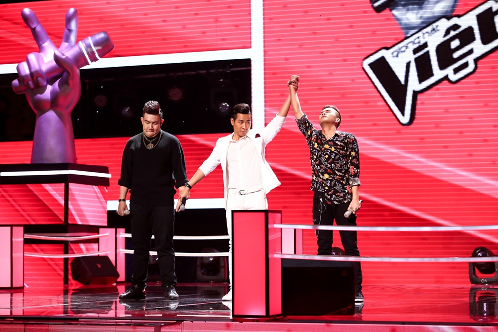 Tiếp đến là cặp đôi đến từ đội HLV Thu Minh là Anh Đức - Ngọc Duy. Cả hai thể hiện ca khúc Nắm lấy tay anh bản hit của nam ca sĩ Tuấn Hưng. Với Ngọc Duy, anh sở hữu chất giọng thanh sắc còn Anh Đức lại mềm và ấm hơn. Hai chất giọng hoàn toàn khác nhau đã làm mới hoàn toàn ca khúc Nắm lấy tay anh cùng những đoạn phiêu khiến người nghe phải “nổi da gà”. Một màn song đấu cân bằng cân sức trên sân khấu The Voice.