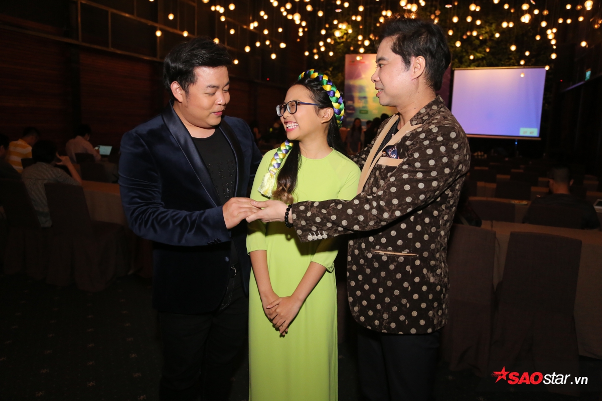 Tại buổi họp báo, Quang Lê luôn dành thời gian chăm sóc con gái của mình.