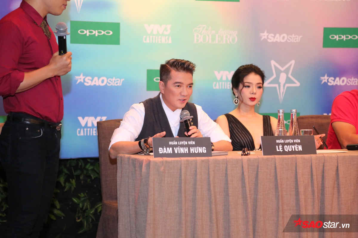 Góp mặt trong buổi họp báo, “anh ba” Ngọc Sơn không quên thể hiện khả năng của mình với những câu hát Bolero vô cùng ngọt ngào. Anh đặc biệt dành biệt danh “cục cưng” cho em trai Quang Lê, trong khi đàn em thể hiện rõ sự điềm đạm của mình trên hàng ghế giám khảo. “Em út” của ghế nóng Thần tượng Bolero dành sự quan tâm nhiều hơn cho các học trò của mình chứ không câu nệ chuyện giải thưởng. Lệ Quyên cũng lần đầu “tố” các bạn nam hầu như không hề nhân nhượng mình trên ghế nóng, tuy nhiên cô tiết lộ cũng không ít lần Quang Lê “chiêu mộ” thí sinh giúp mình. Bên cạnh đó, HLV Đàm Vĩnh Hưng cũng tiết lộ, chương trình năm nay có dàn thí sinh vô cùng chất lượng, đặc biệt là “trai tài, gái sắc” xuất hiện rất nhiều.