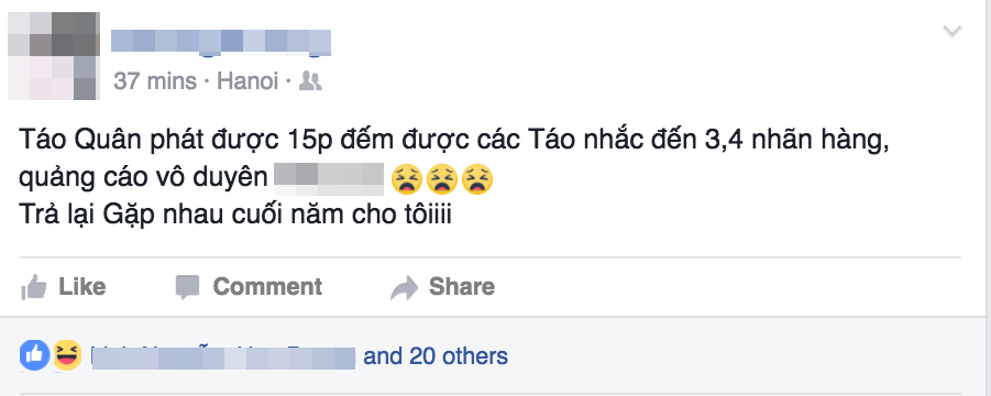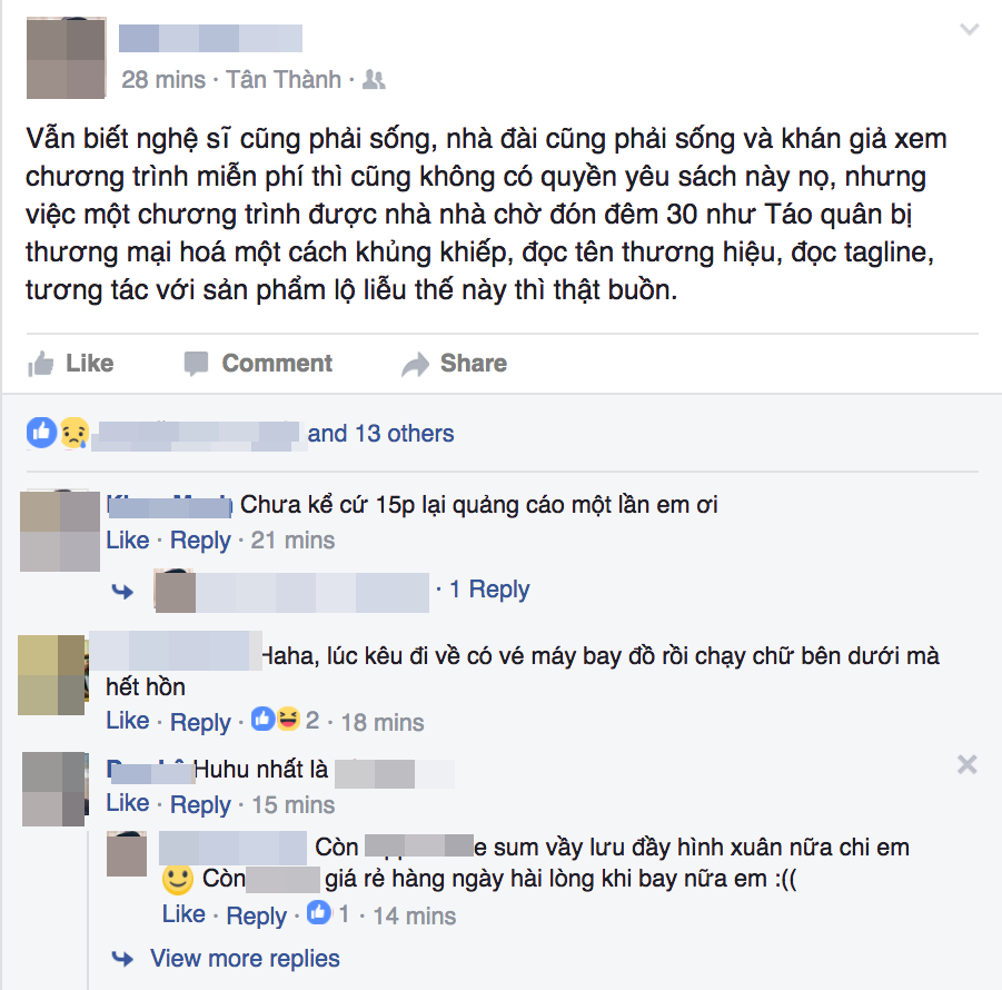 Dù nhận được sự hưởng ứng và mong đợi từ phía khán giả, nhưng chỉ ở vài phút đầu công chiếu, Táo Quân 2017 đã vấp phải sự “chỉ trích” bởi những quảng cáo quá lộ liễu và chèn quá nhiều giờ phát sóng khiến khán giả ngao ngán.