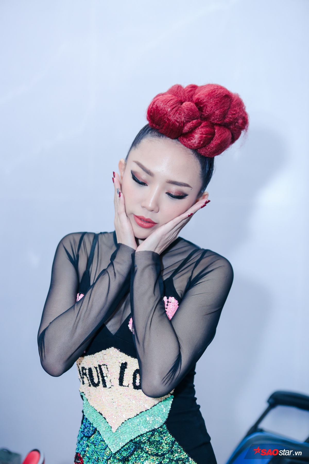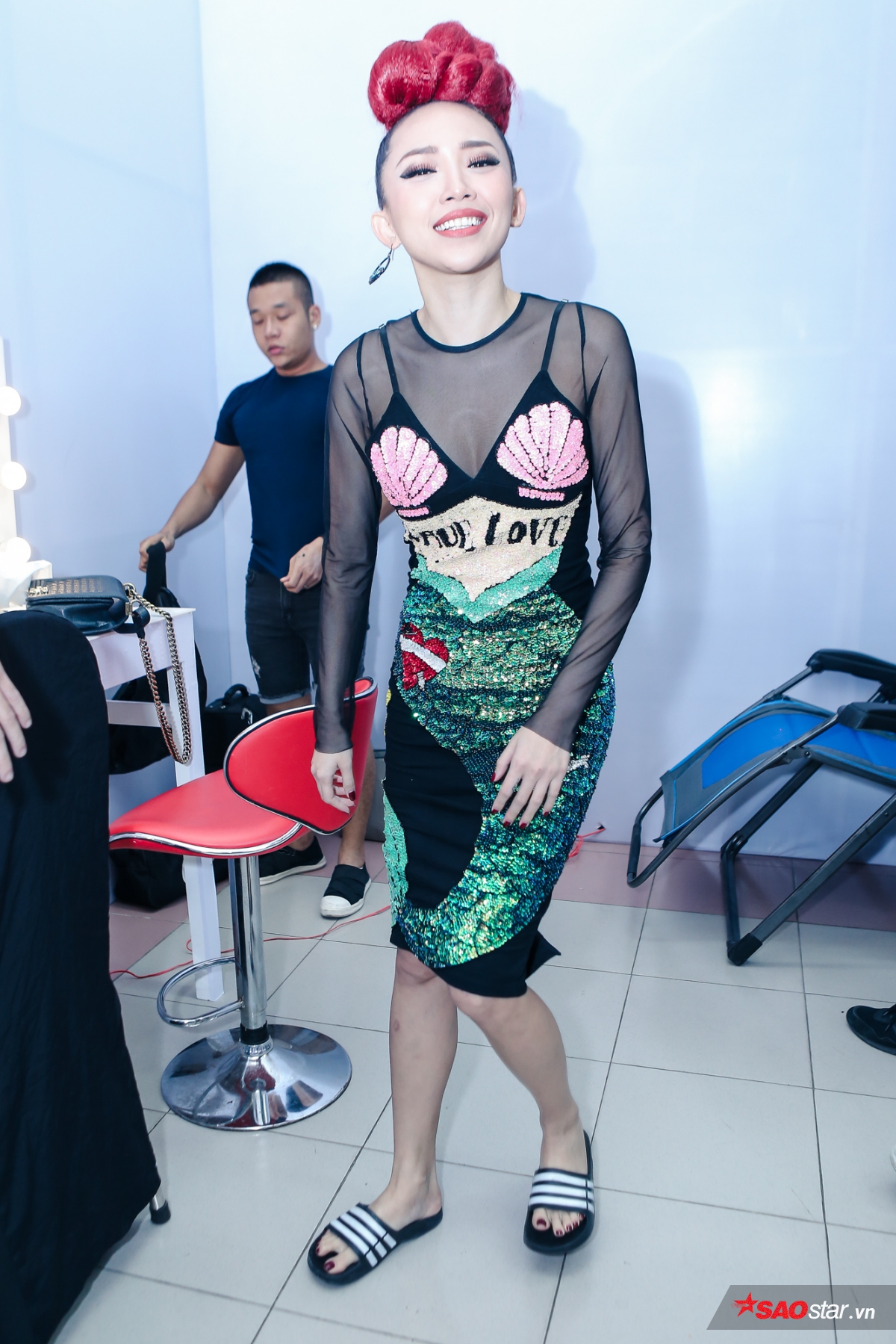 Tóc Tiên mang dép lê nhí nhảnh xuất hiện tại hậu trường buổi ghi hình…