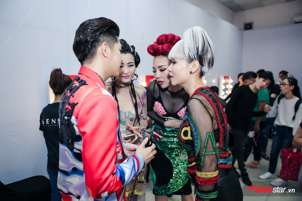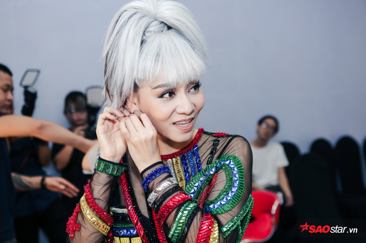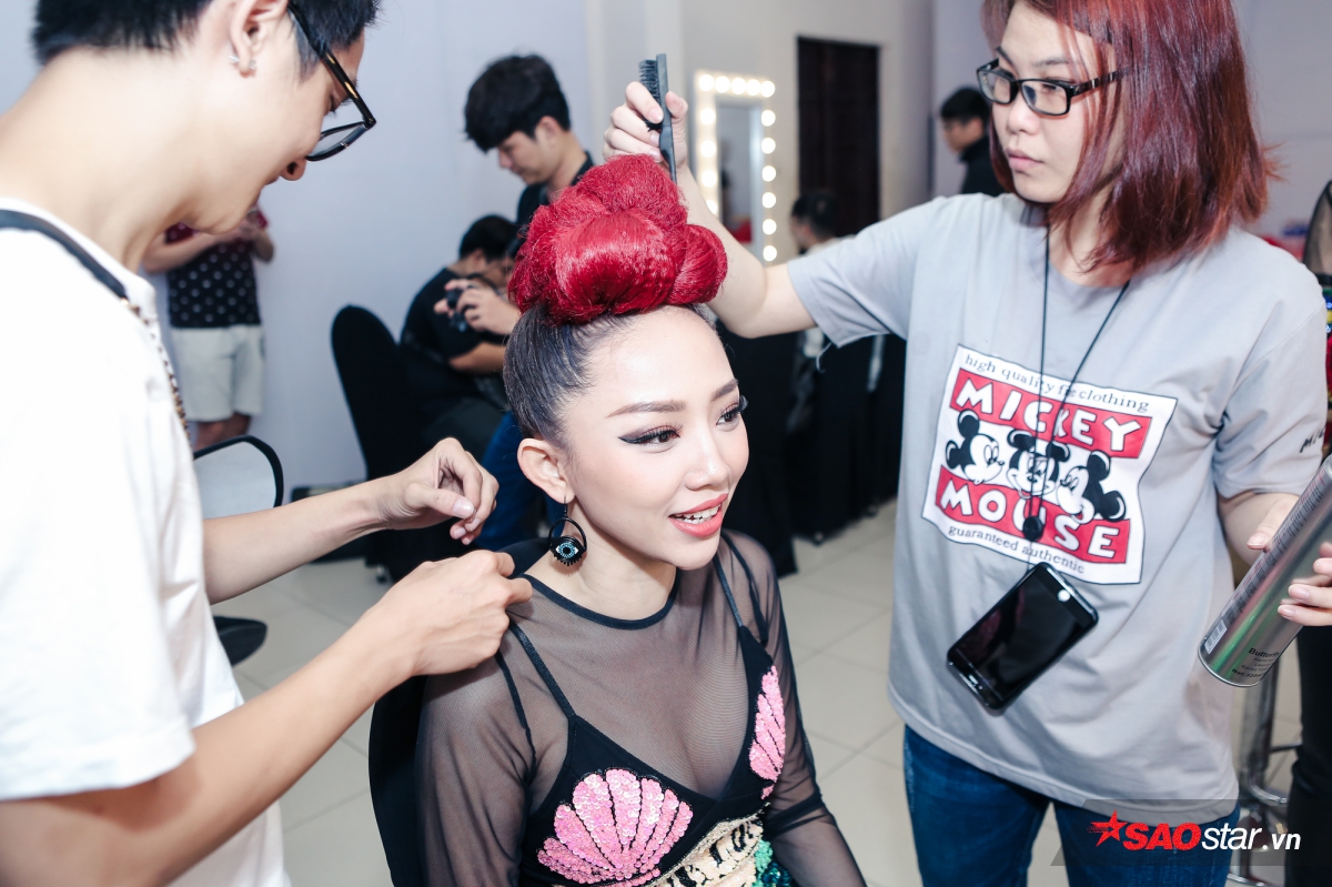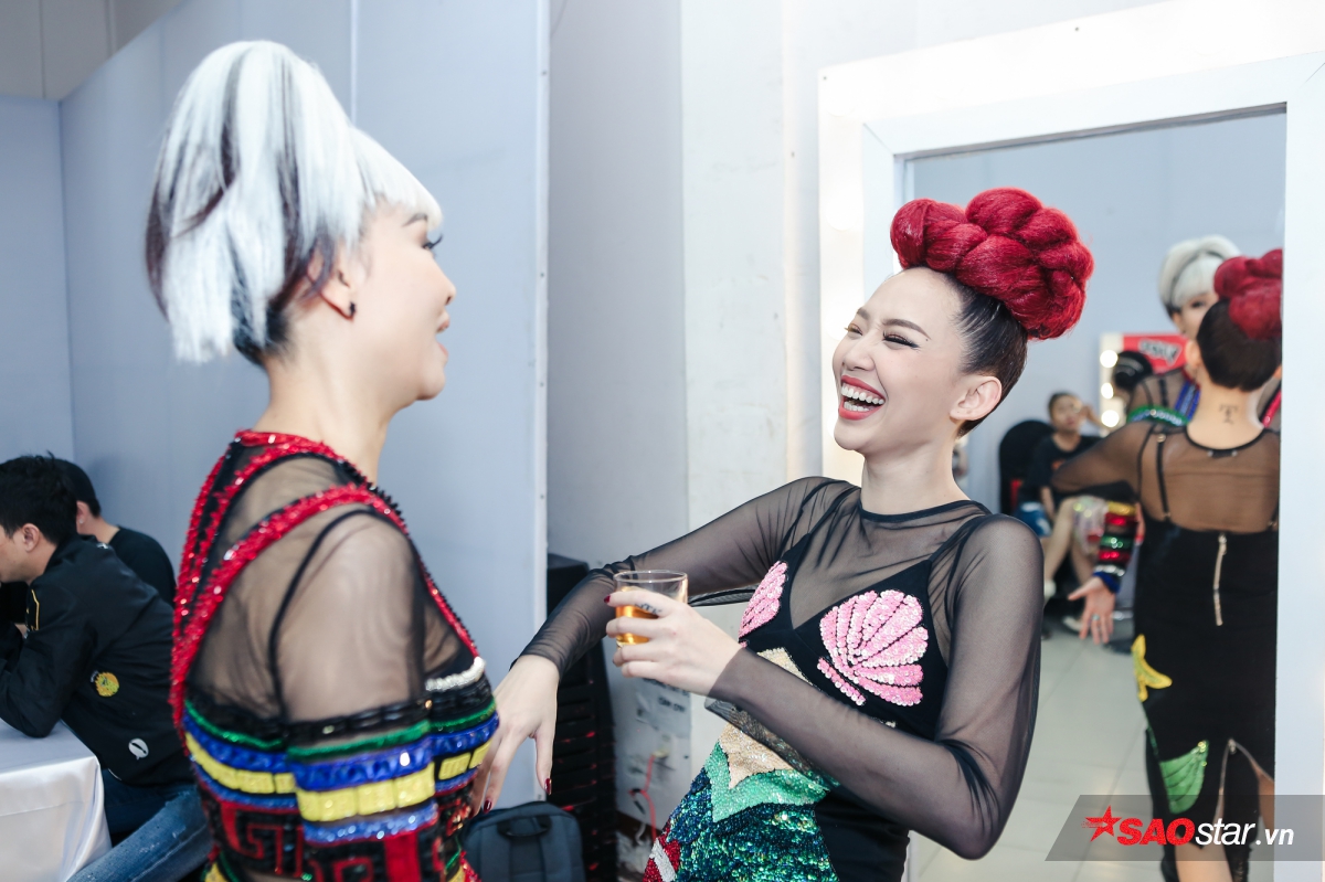 Ngay sau đó, giám khảo trẻ tuổi nhất trong bộ tứ HLV đã bước vào trên trong hậu trường để sửa sang lại trang phục, makup chỉn chu để chuẩn bị lên sóng. Tóc Tiên cùng Noo Phước Thịnh, cũng như các HLV còn lại đã vô cùng vui vẻ, cười nói đùa giỡn trước giờ quay hình.