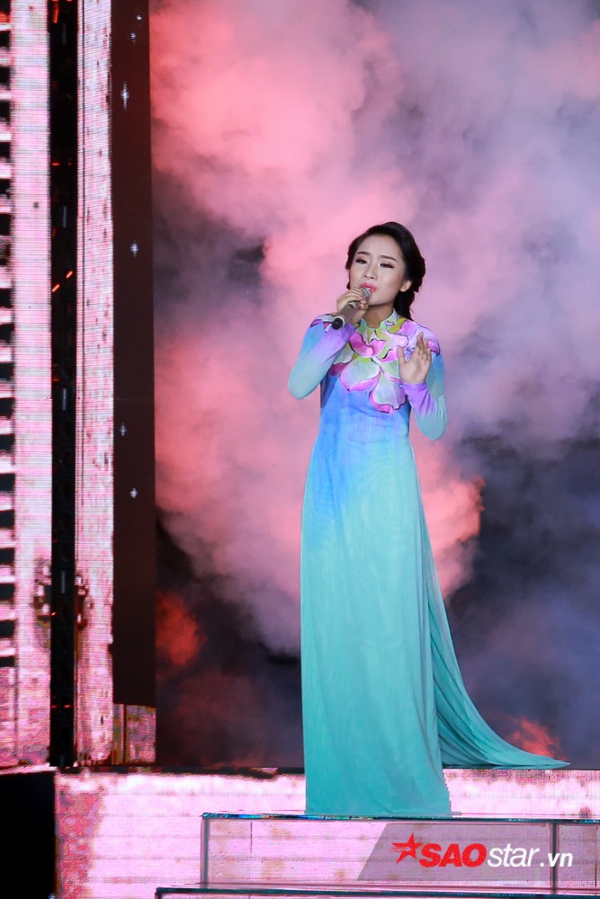 20h40: Thí sinh Triều Quân đội Lệ Quyên mở màn đêm thi với nhạc phẩm Giã Từ ngọt ngào, da diết.