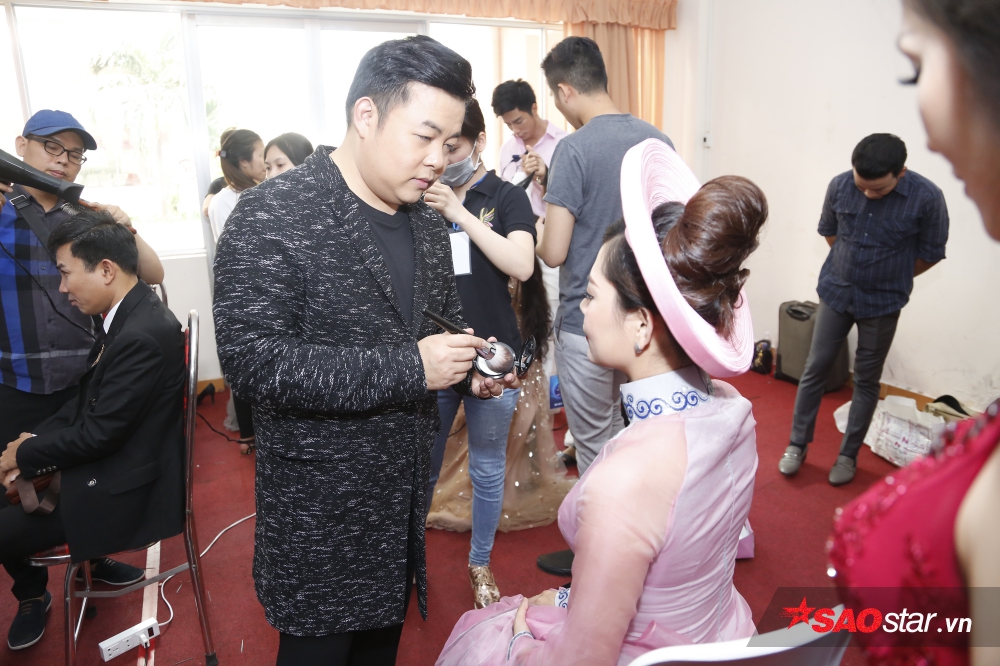 Quang Lê tự tay trang điểm để thí sinh được đẹp nhất có thể.
