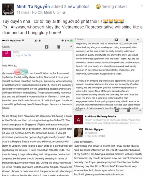 Bức email mời tham gia của BTC được Minh Tú chia sẻ trên facebook cá nhân.