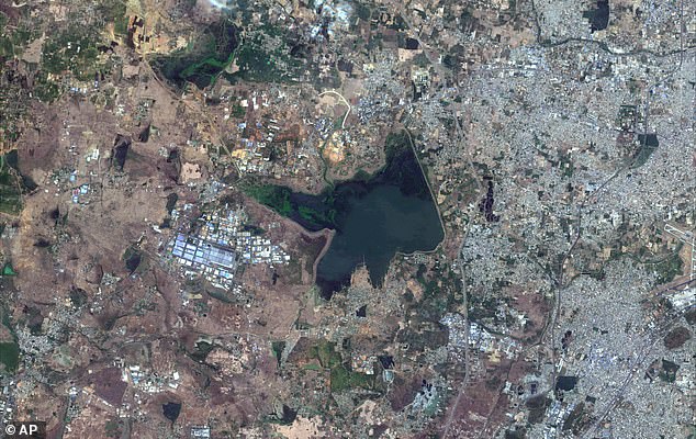 Ảnh vệ tinh cho thấy hồ Chembarambakkam cạn nước. Ảnh: AP
