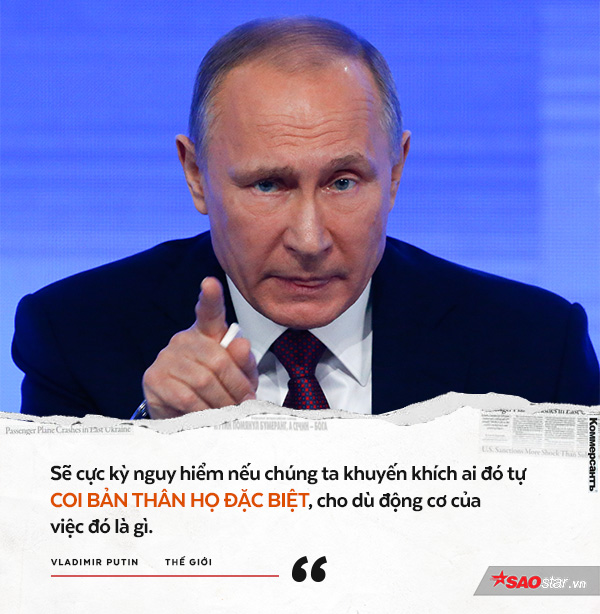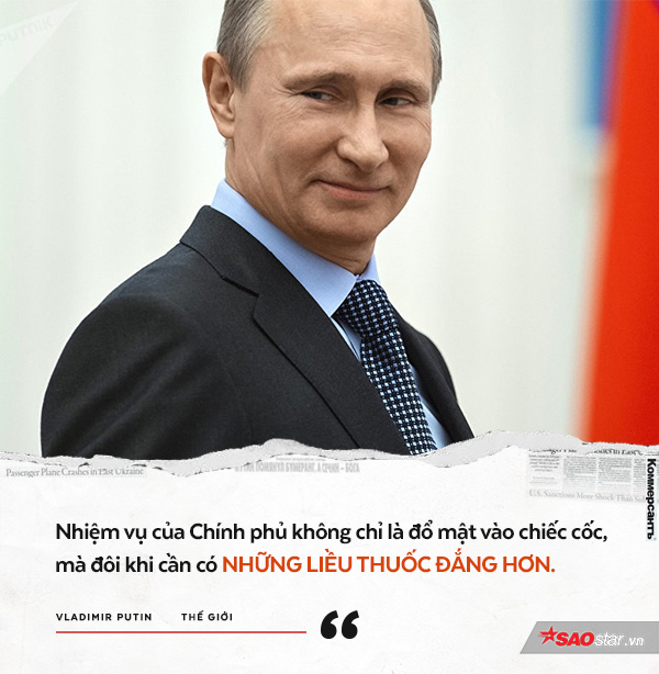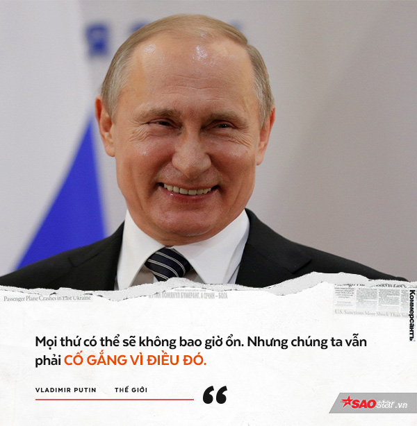 Tuy vậy, bên cạnh hành động, ông Putin còn có nhiều câu nói nổi tiếng, thể hiện tinh thần yêu nước, ý chí sắt đá chống khủng bố cũng như xây dựng một nước Nga vĩ đại. Qua những phát ngôn cứng rắn, Putin cho thấy rõ ông là một vị Tổng thống mạnh mẽ, gai góc và đầy quyền lực.