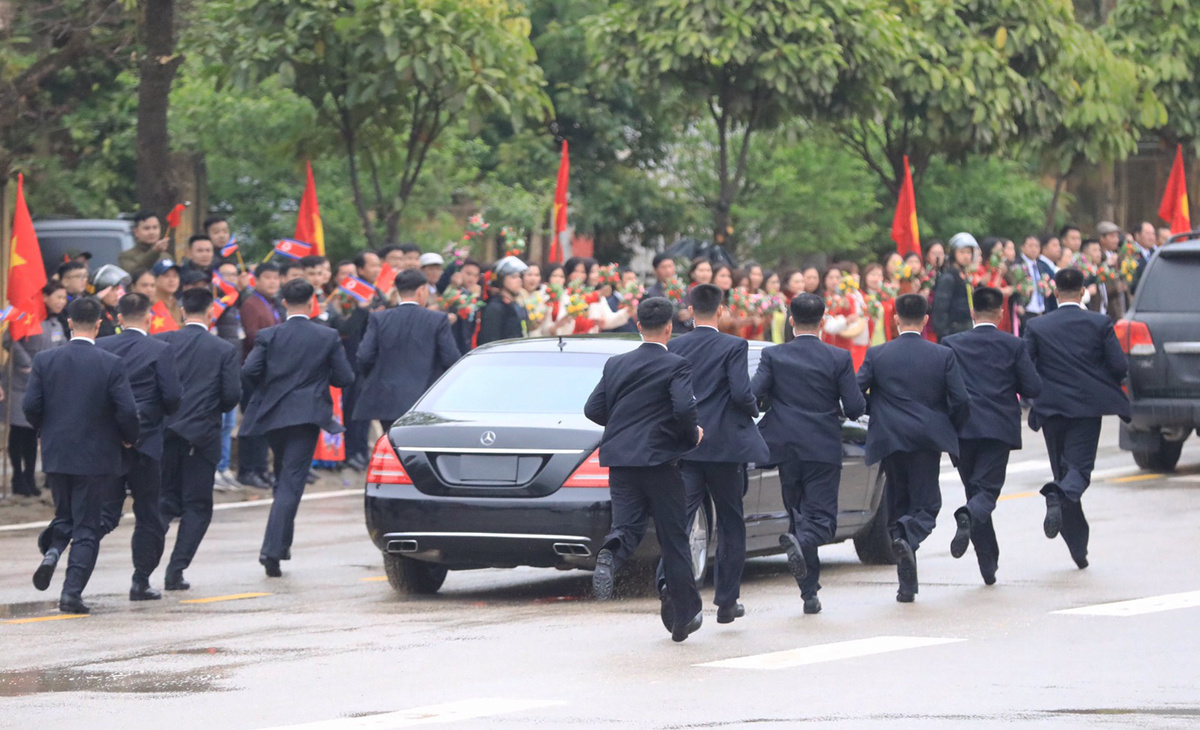 Khi chiếc Mecerdec S600 tăng tốc độ, đội cận vệ chạy theo một đoạn chừng 30 m. Ngay sau đó, họ quay lên ôtô đi theo đoàn xe về Hà Nội. Hội nghị thượng đỉnh Mỹ - Triều lần hai dự kiến diễn ra tại Hà Nội ngày 27-28/2. Một quan chức Mỹ giấu tên hôm 21/2 tiết lộ Tổng thống Trump có 4 ưu tiên trong hội nghị thượng đỉnh lần 2 bao gồm cải thiện quan hệ giữa Washington và Bình Nhưỡng, thiết lập hòa bình lâu dài trên bán đảo Triều Tiên, phi hạt nhân hóa và hồi hương hài cốt binh sĩ thiệt mạng trong chiến tranh Triều Tiên. Ảnh: VnExpress