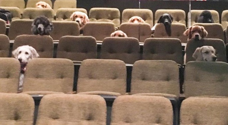 Trong hình là nhóm chó nghiệp vụ tương lai đang ngồi yên lặng trong suốt buổi hòa nhạc để kiểm tra mức độ kiên nhẫn và bình tĩnh của chính mình.