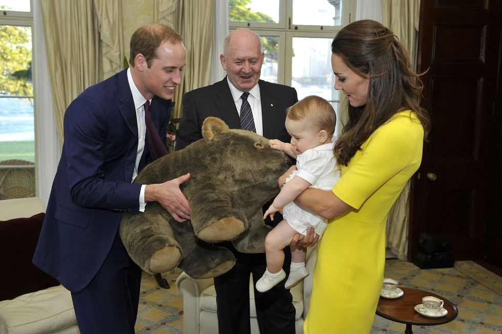Trong hình là con thú nhồi bông đầu tiên của Hoàng tử George. Vợ chồng Hoàng tử William đưa con trai tới Australia năm 2014. Và ông bố hoàng gia đã cố hết sức để con có trải nghiệm đáng nhớ nhất. Ảnh: Getty
