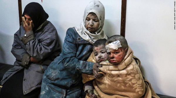 Theo báo cáo của Qũy nhi đồng Liên hợp quốc (UNICEF), năm 2017 được coi là “năm ác mộng” của trẻ em, những đối tượng dễ bị tổn thương nhất. Những đứa trẻ em trong những cuộc xung đột và ngay cả khi kết thúc, chúng vẫn phải hứng chịu hậu quả khôn lường như thương tật, mắc bệnh hiểm nghèo hay suy dinh dưỡng, thiếu lương thực, nguồn nước sạch, không được tiếp cận các cơ sở y tế đầy đủ, vốn đã bị phá hủy trong chiến tranh. Trong ảnh là phụ nữ và trẻ em bị thương trong vụ đánh bom hôm 20/1 tại Damascus, Syria, đang chờ được điều trị.