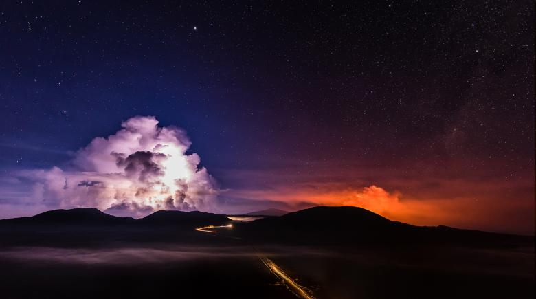 Cảnh dung nham nóng chảy chảy từ Piton de la Fournaise, một trong những ngọn núi lửa hoạt động mạnh nhất trên đảo Reunion của Ấn Độ Dương, vào ngày 3/2.