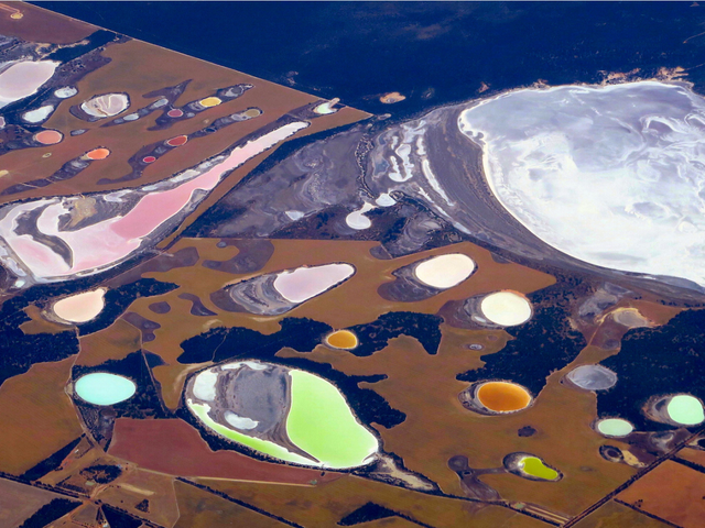 Những điểm trong bức ảnh này thật ra là các con đập và lòng chảo muối nằm ngay bên ngoài Perth, Australia.